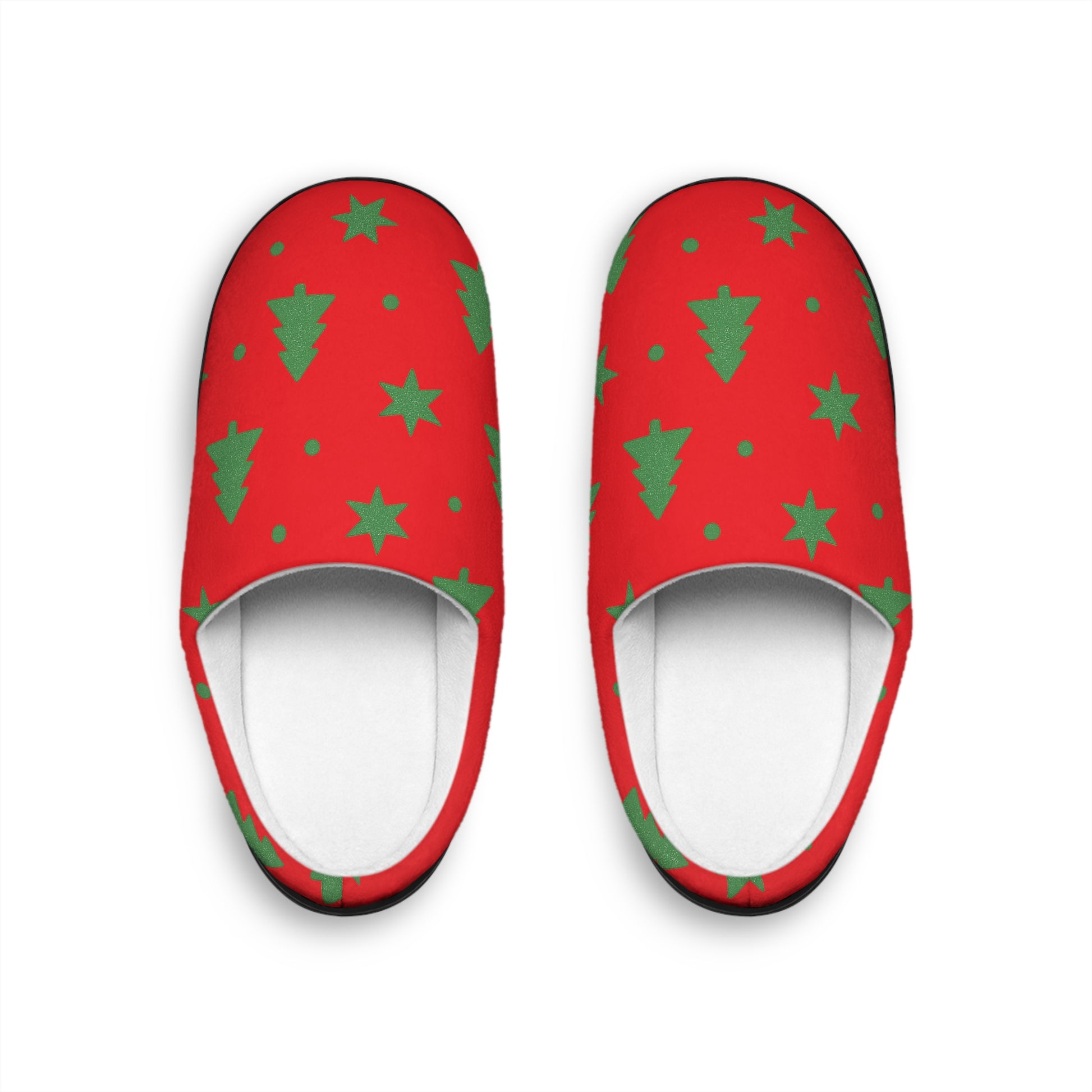 Step into the season with our Merry & Bright Christmas Slippers. Featuring a festive red base covered in cheerful green Christmas trees, these cozy slippers are made to keep your feet warm while adding a touch of holiday fun. Perfect for lounging, Christmas morning traditions, or gifting to someone you love.